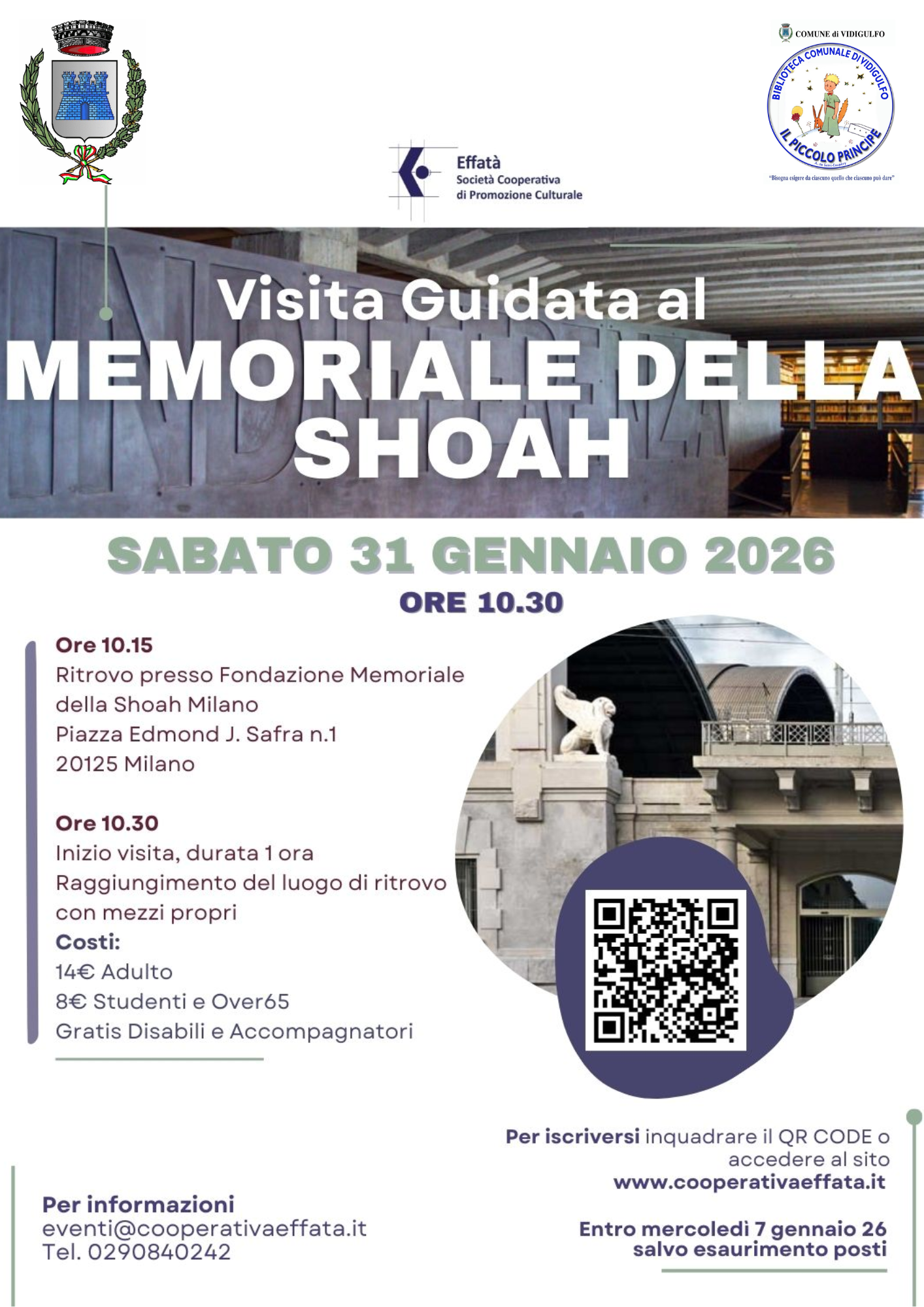 La biblioteca comunale organizza con la cooperativa Effatà di promozione culturale, una visita guidata al Memoriale della Shoah