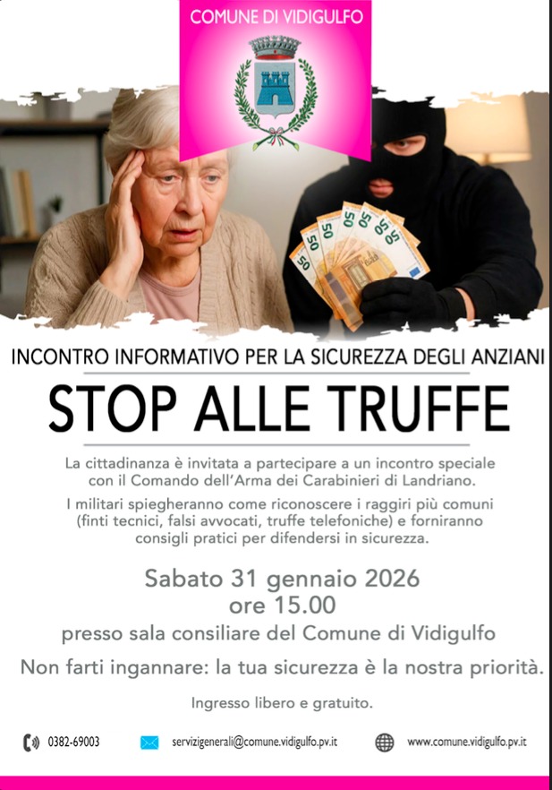 I militari spiegheranno come riconoscere i raggiri più comuni (finti tecnici, falsi avvocati, truffe telefoniche) e forniranno consigli pratici per difendersi in sicurezza.