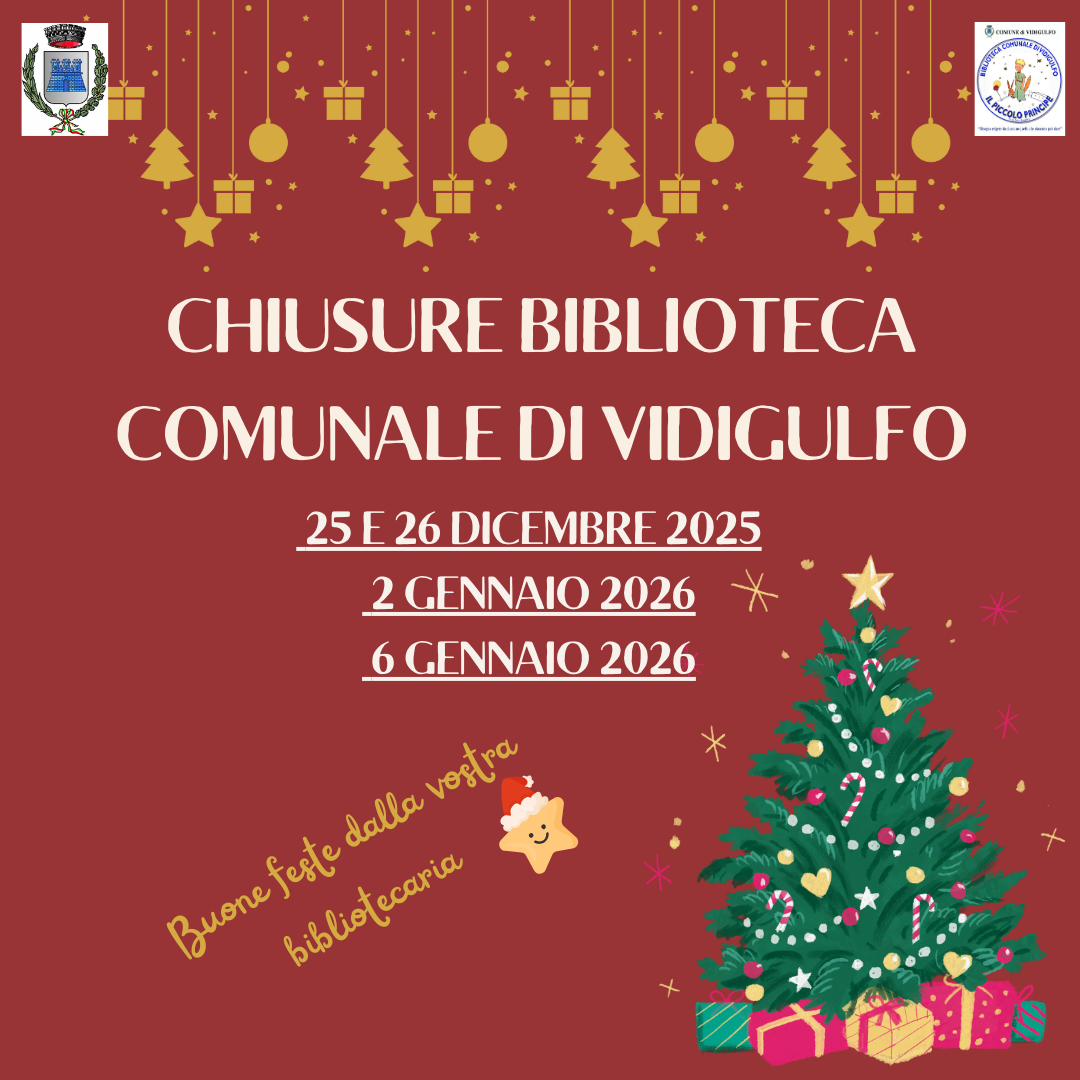 Si informa l'utenza che la Biblioteca Comunale rimarrà chiusa al pubblico in occasione delle festività natalizie.