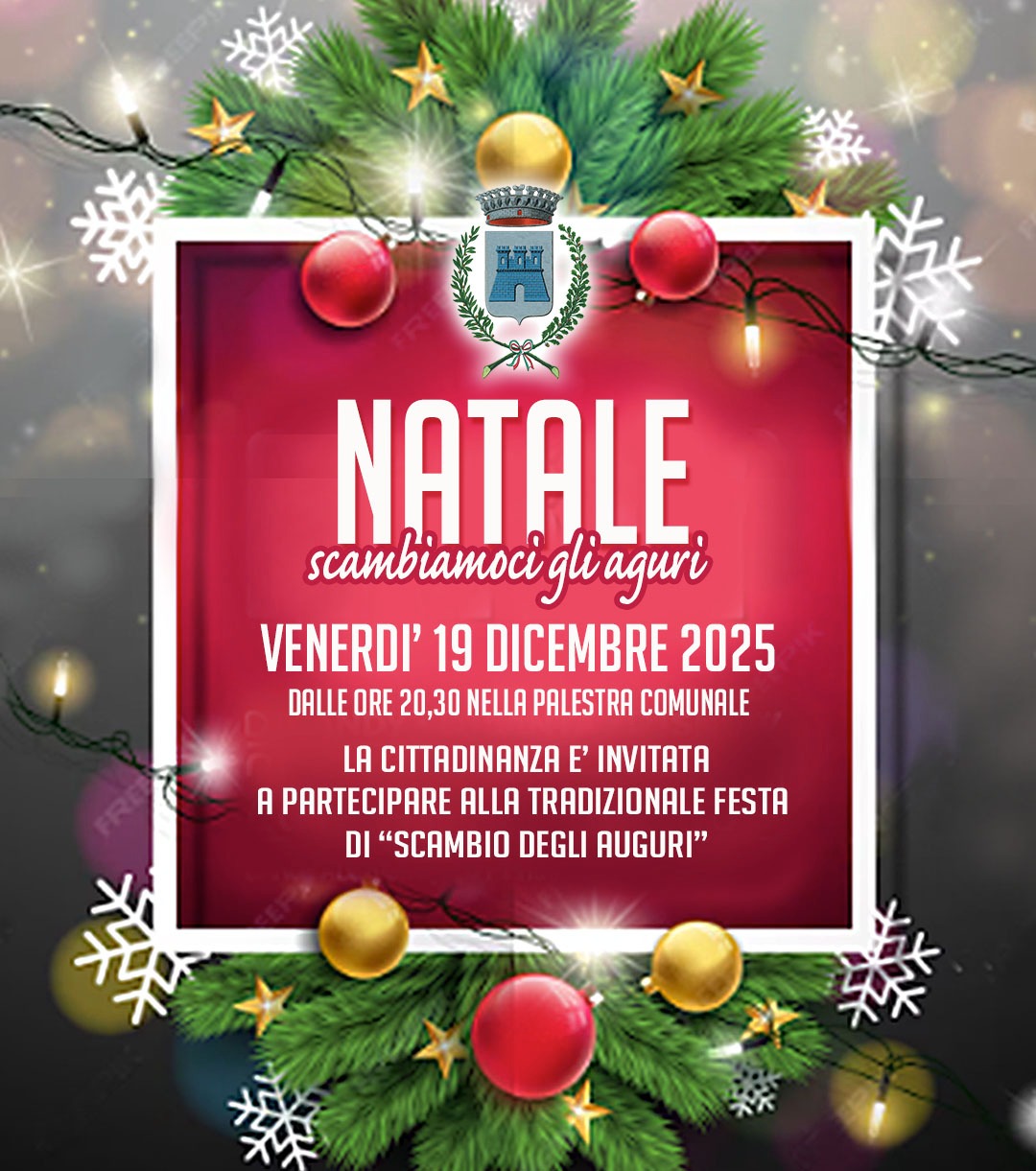 L'Amministrazione comunale invita tutta la cittadinanza alla tradizionale Festa di Scambio degli Auguri