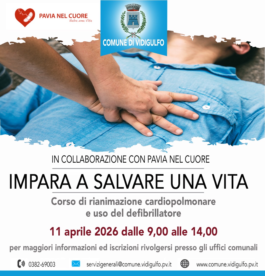 Corso di rianimazione cardiopolmonare e uso del defibrillatore "Impara a salvare una vita" in collaborazione con PAVIA NEL CUORE.
