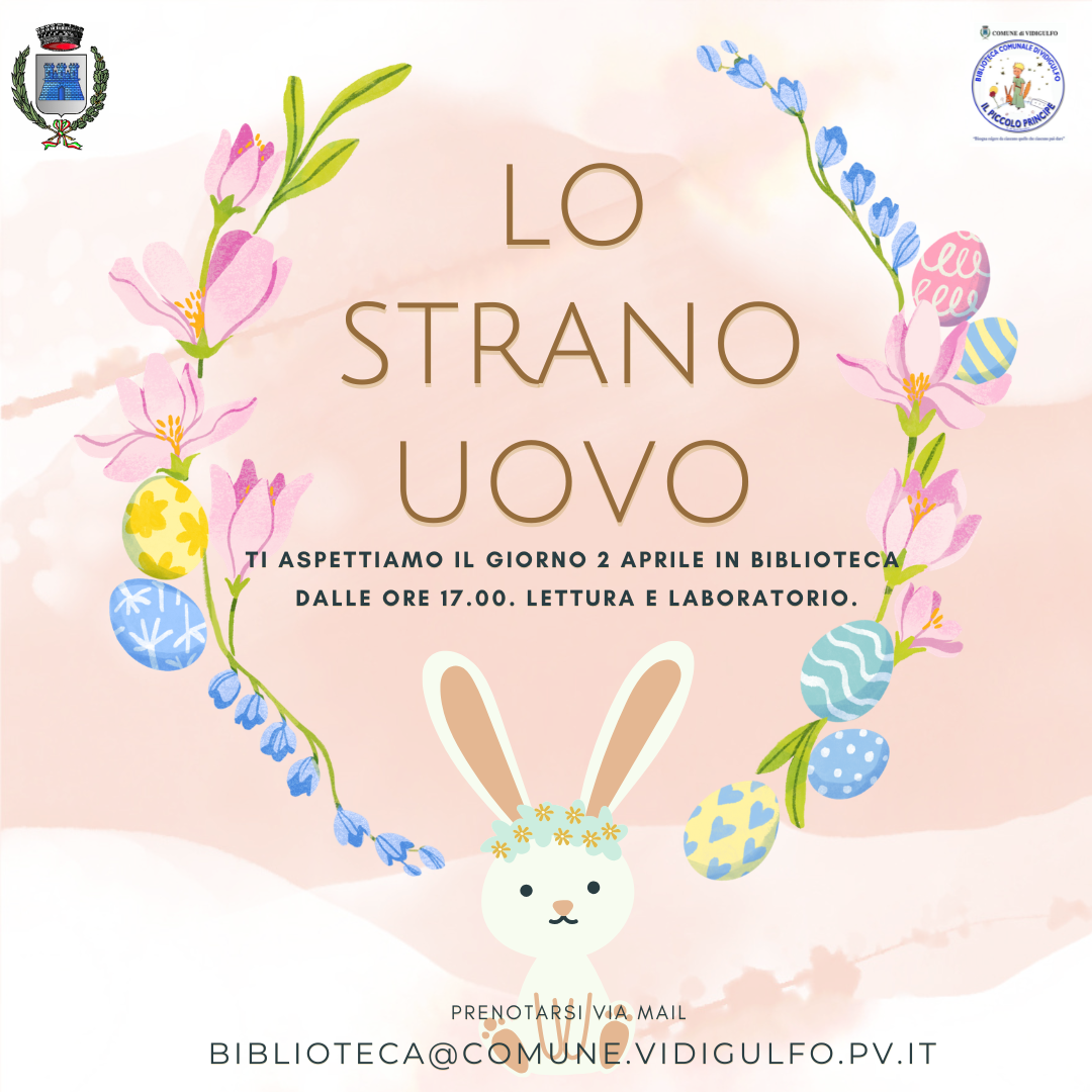 Vi aspettiamo il 2 aprile alle opre 17.00 in biblioteca per una lettura speciale e un laboratorio creativo a tema pasquale dove daremo spazio alla fantasia.