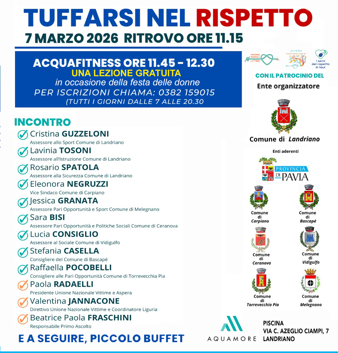 In occasione della Giornata Internazionale della Donna, Sabato 7 marzo 2026 presso la piscina Aquamore di Landriano dalle ore 11:15: